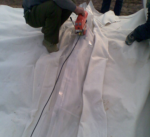 復合土工膜是在薄膜的一側或兩側貼上土工布,形成復合土工膜。其形式有一布一膜、二布一膜、兩膜一布等。根據多年實(shí)踐證明,土工膜厚度不小于0.25mm,太薄可能產(chǎn)生氣孔,且易在施工中受損而降低防滲效果。土工膜施工中,特別要注意做到鋪設不宜過(guò)緊,不得打皺,拼接要牢固。要嚴格按技術(shù)規范施工,把好準備、鋪設、拼接、檢驗和回填等五道質(zhì)量關(guān)。由于復合土工膜良好的防滲效果,目前,寶雞峽灌區節水改造與續建配套項目建設中,大量采用該材料,受到了設計、建設單位的廣泛好評。