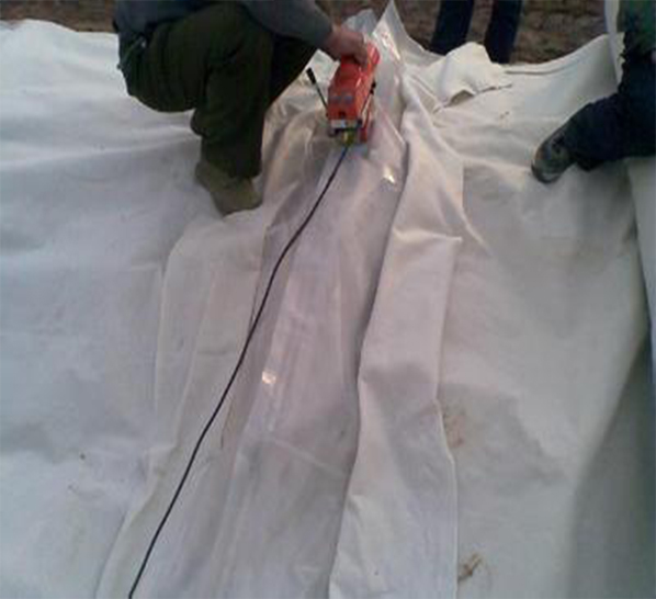 5、施工時(shí),應避免石塊,重物直接砸在土工膜上、要邊施工、邊鋪設膜、邊覆蓋保護層。
