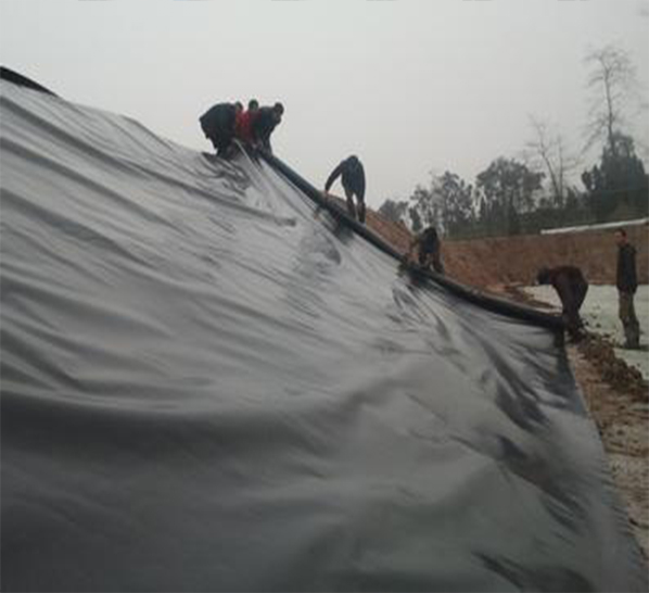 6、HDPE土工膜在鋪設中,應避免產(chǎn)生人為褶皺,溫度較低時(shí),應盡量拉緊,鋪平。