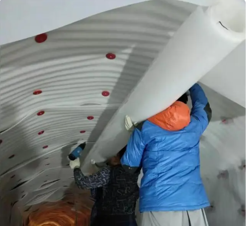 隧道EVA吊掛式防水板的安裝方法是:先在基礎表面涂刷專(zhuān)用膠水,然后將防水板吊掛在基礎表面上,并用專(zhuān)用膠水將各板材粘接在一起,最后用專(zhuān)業(yè)工具在板材連接處進(jìn)行密封處理。該防水板施工完畢后,可在其表面覆蓋一層防護層,以保護其不受外力破壞和污染。